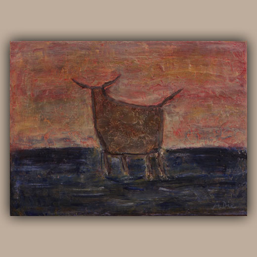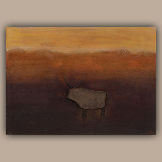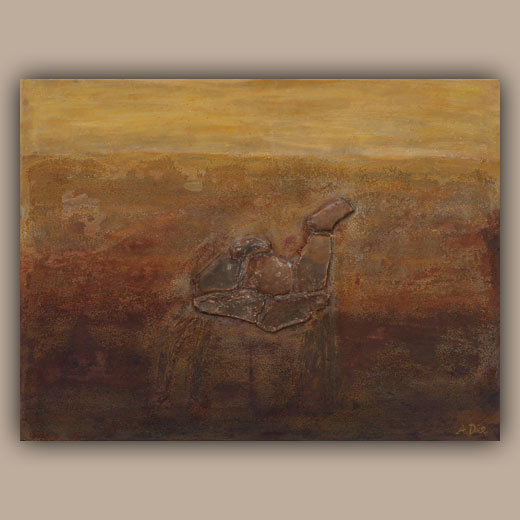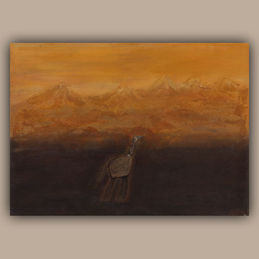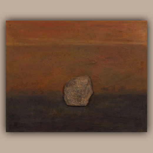 Die Steincollagen erinnern an Höhlenmalereien oder Schamanische Ausdrucksformen und nehmen den Betrachter auf eine Reise in die Vergangenheit an verlassene Orte der Ruhe und Besinnung.