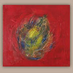 Auch die Stilleben entstehen spontan, intuitiv. Sie sind ganz klar und einfach in ihrer Form auf das Wesentliche begrenzt, sehr ausdrucksstark, und intensiv in ihren Farben.