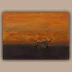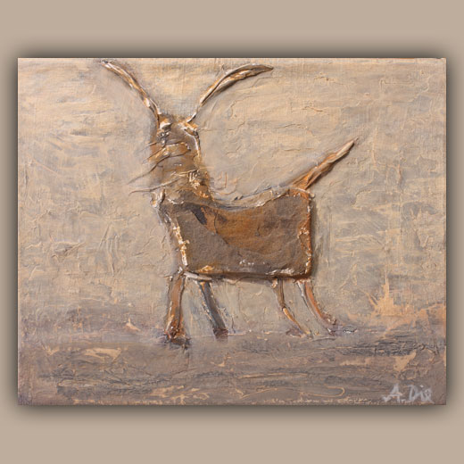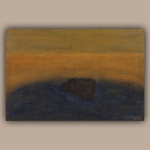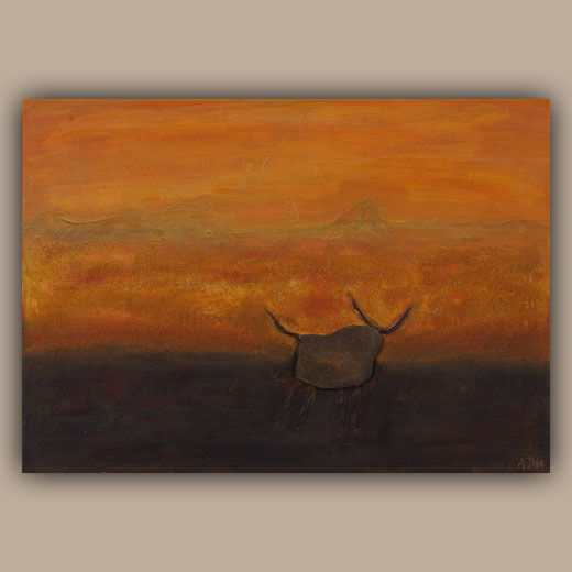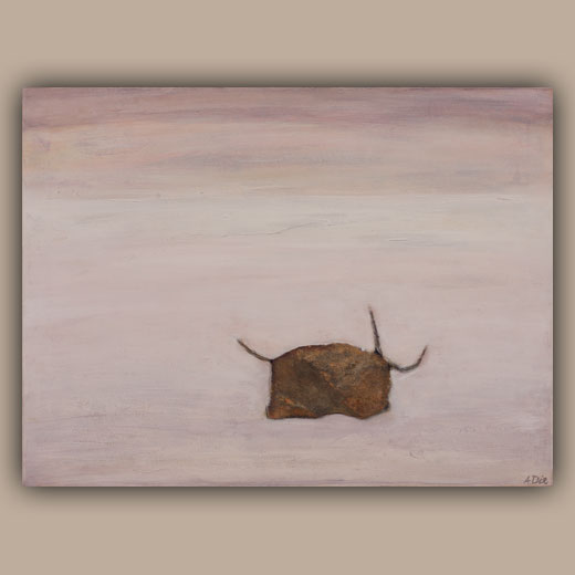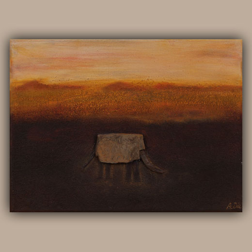 Die Steincollagen erinnern an Höhlenmalereien oder Schamanische Ausdrucksformen und nehmen den Betrachter auf eine Reise in die Vergangenheit an verlassene Orte der Ruhe und Besinnung.
