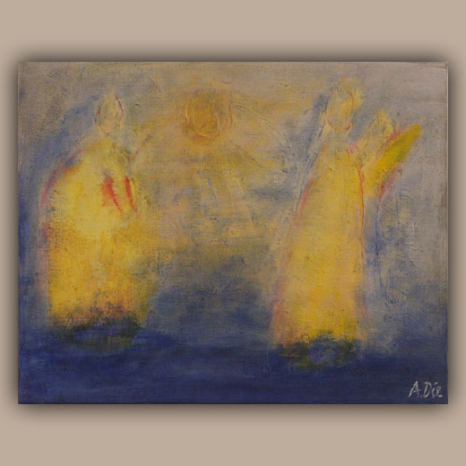 Figuren, die der Betrachter erahnen kann, von Menschengestalten bis zu Licht – und Fabelwesen, regen diese Bilder zur Fantasie an. Sie nehmen den Betrachter mit auf eine Reise in die Welt der Märchen, Mythen und Religion. Und laden ein zur Ruhe und Besinnung.