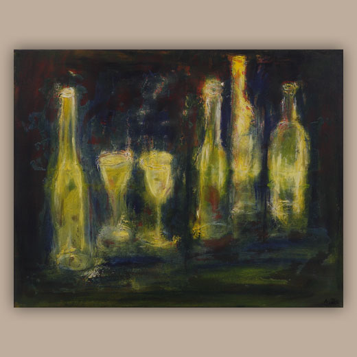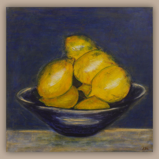 Auch die Stilleben entstehen spontan, intuitiv. Sie sind ganz klar und einfach in ihrer Form auf das Wesentliche begrenzt, sehr ausdrucksstark, und intensiv in ihren Farben.